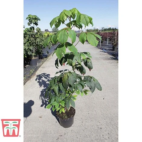 A hardy, deciduous, stately tree with palmate leaves which open bronze turning to dark green and then to yellow in autumn. Aesculus parviflora is a member of the horse chestnut family but much more dwarf in habit. Erect spidery white flowers with prominent stamens in conical panicles up to 30cm (12’’) tall during June and July, followed by smooth skinned fruits. This plant will need space to grow, either in sun or part shade, tolerant of all soils if well drained. Height: 3m(9’). Spread: 5m( 15’).