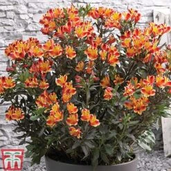 - Alstroemeria ‘Summer Breeze’ – Shimmering bronze foliage sets off the glorious oranges and yellows of the blooms above. Height and spread: 60cm (24″).