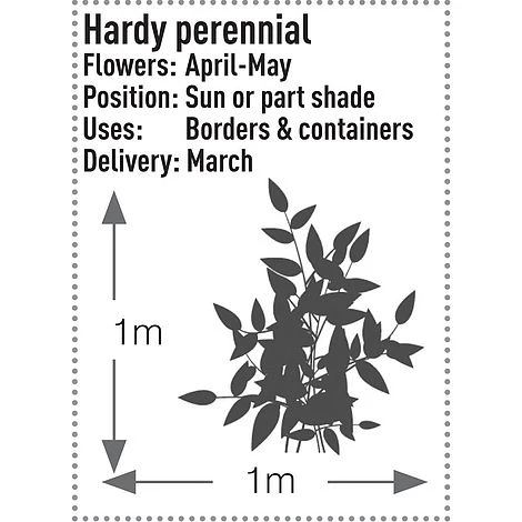 Plant height and spread is seasonal therefore we list by pot size rather than a defined plant size. The height and spread of the plant delivered will vary depending on the season, meaning arrival images are an indication only.
