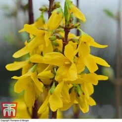 Spring hasn’t truly sprung until you have seen Forsythia in bloom. The slender stems of this ever popular deciduous shrub are smothered in bright yellow bell shaped flowers from early March onwards. Once these have faded away, Forsythia x intermedia ‘Week-End’ with happily become part of a hedge or shrub border, These plants can also be used in containers to brighten up your patio! Height: 250cm (98″). Spread: 250cm (98″).