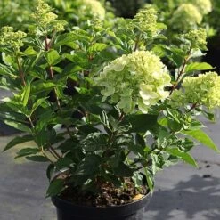 Much smaller than its sibling Hydrangea ‘Limelight’, but equally impressive! Hydrangea paniculata ‘Little Lime’ produces Glorious lime-green flowers in late summer that fade through creamy white to a soft shade of pink. This compact paniculata variety is perfect for smaller gardens and containers, where it copes well in tricky north facing positions. The colourful autumn foliage only adds to its considerable charm. Height & Spread: 150cm (60″).