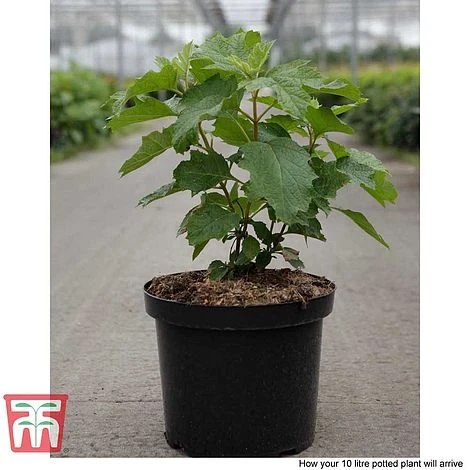 From bright green, oak leaf shaped foliage in the spring to an impressive display of colour in the the autumn, Hydrangea quercifolia ‘Snow Queen’ certainly gives plenty of variety and visual impact in your garden! In early summer, panicles of white flowers appear in elongated cones on this hardy, deciduous shrub. As the flowers slowly fade to a pale, dusky pink, the leaves also change to shades of reds, golds and yellows, making this usual hydrangea definitely worth considering for keeping your garden full of interest all through the growing seasons. Height: 250cm (98″). Spread 250cm (98″).