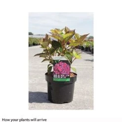 Deep pink, mophead flowers start to appear in June which slowly turn a darker red with age on this delightful variety of the popular garden shrub. Hydrangea serrata Preziosa’, is a hardy, deciduous plant, sprouting bronze coloured leaves in spring which gradually mature through green shades to deep reds in the autumn, the perfect way to show off its blooms. Hydrangeas are an easy to keep shrub, requiring little maintenance to produce a an impressive display. Ideal for containers as well as beds. Height: 150cm (59″). Spread: 150cm (60″).