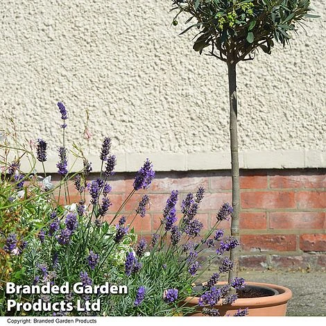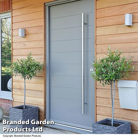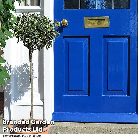 These slow growing, self fertile, evergreen trees are normally associated with the Mediterranean but you can now grow these highly decorative plants very successfully in the UK. Attractive grey-green foliage atop a tall slender stem makes this Olive Tree standard an elegant and modern addition to the garden. In long, hot summers the small fragrant flowers are followed by smooth green fruits. Olive trees can be grown in very sheltered gardens or large containers, and make an attractive and productive addition to the patio. Height: 150cm (59″). Spread: 50cm (20″).